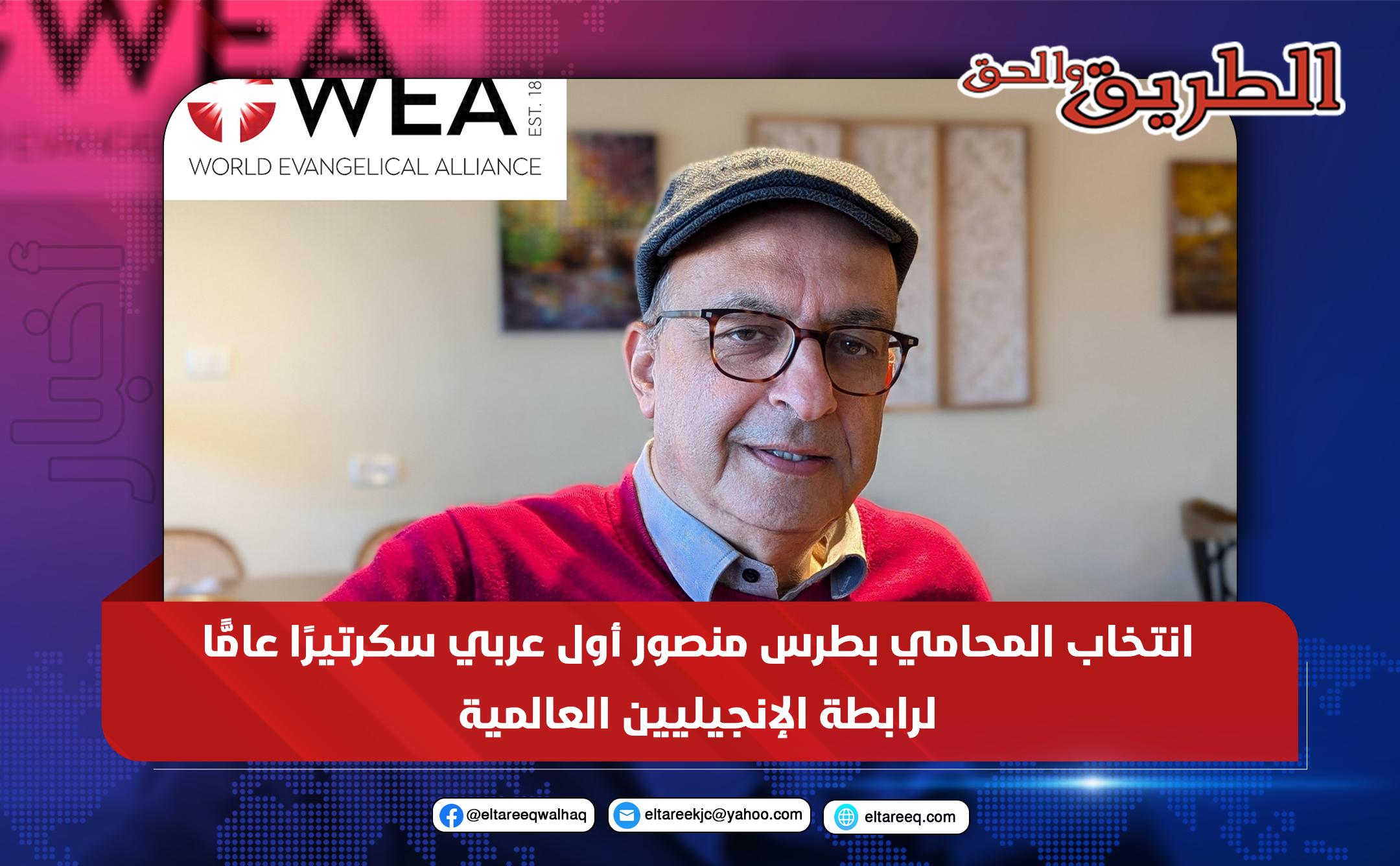أعلن المجلس الدوليُّ لرابطة الإنجيليين العالمية (World Evangelical Alliance – WEA) عن اختيار المحامي بطرس عطا الله منصور، ابن مدينة الناصرة، سكرتيرًا عامًّا جديدًا للتّحالف، الّذي يضمُّ أكثر من 600 مليون إنجيليّ حول العالم. ويعدُّ منصور أوّل عربيٍّ يتولّى هذا المنصب الرفيع.