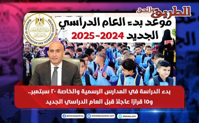 قررت وزارة التربية والتعليم والتعليم الفني، اتخاذ عددًا من القرارات والإجراءات، لضمان انتظام العملية التعليمية في العام الدراسي الجديد 2025 / 2026.