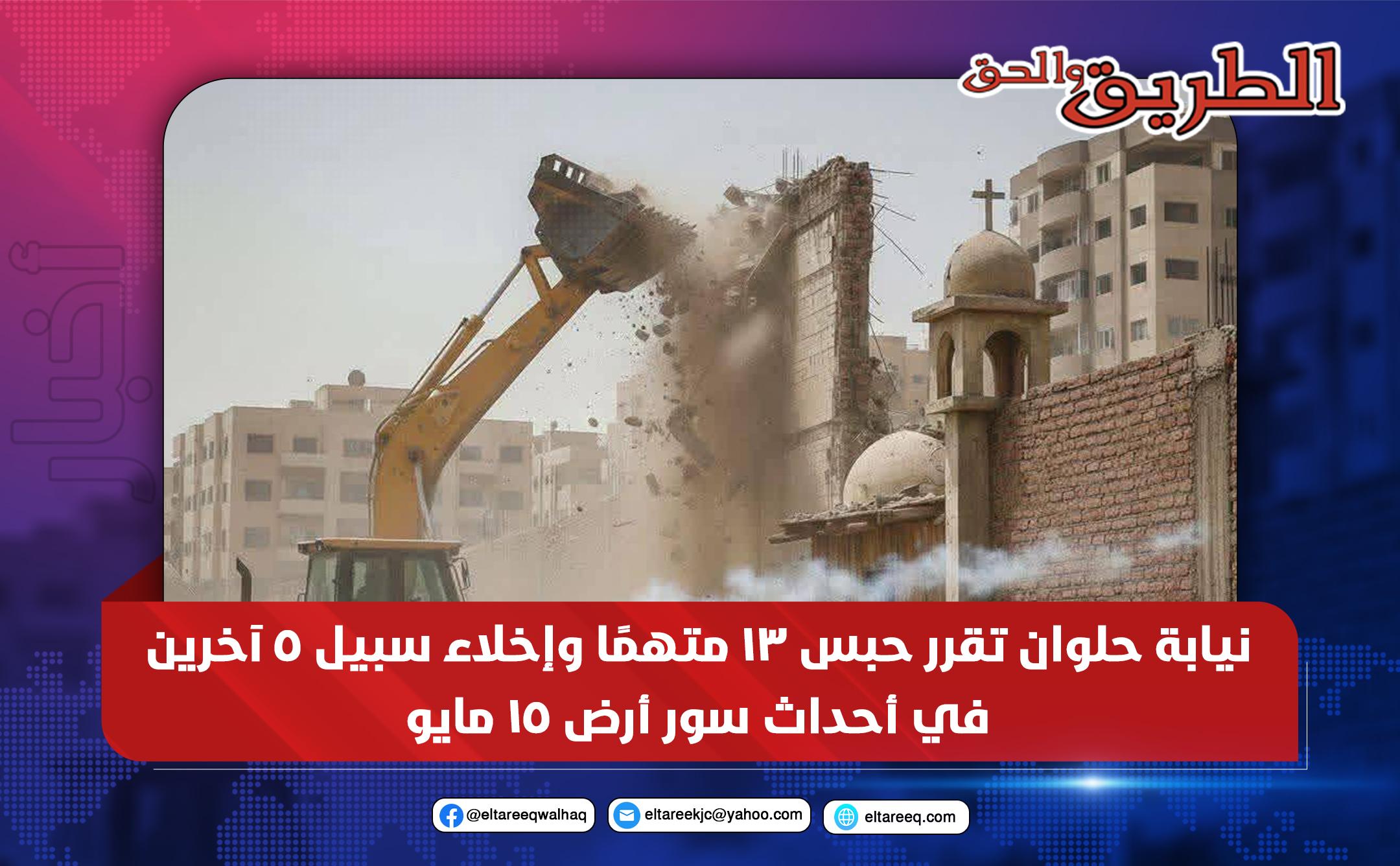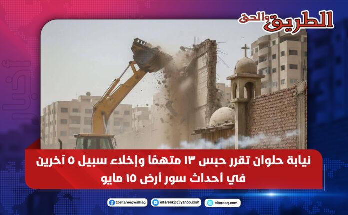 قال دفاع المتهمين الأقباط في الأحداث التي وقعت أثناء تنفيذ قرار إزالة سور حول أرض مخصّص جزء منها لبناء كنيسة، إن نيابة حلوان قررت اليوم حبس 13 متهمًا لمدة 4 أيام على ذمة التحقيق، مع إخلاء سبيل 5 آخرين، وجميعهم من السيدات.